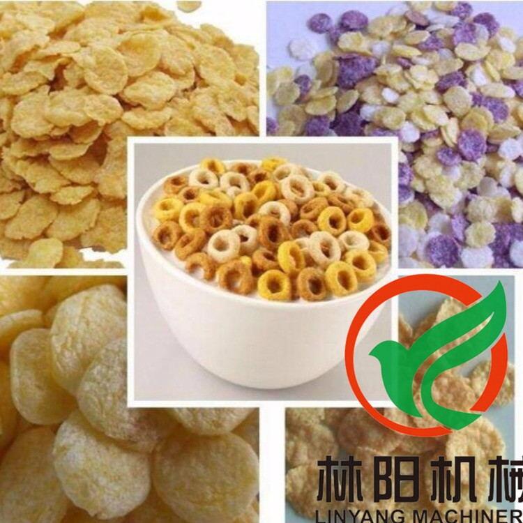 早餐谷物食品作为一种方便快捷、营养丰富且比较均衡的食品很快进入千家万户。在现代加工中通常采用挤压机来完成,对加水后玉米粉混合物的充分揉制、蒸煮熟化和切粒压片成型。玉米片的营养丰富且比较均衡,是不可多得的谷物类早餐食品,通常与牛奶一起食用。枣庄谷物脆生产线 谷物脆生产设备LY65谷物脆加工机械