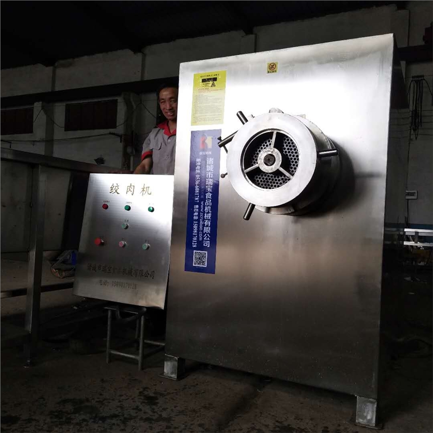 冻肉绞肉机是肉制品生产行业中通用性高使用范围广的一种肉食加工设备。它是依靠螺杆将料斗中的原料肉推到预切切板处,通过螺杆的旋转挤压使孔板与绞刀产生相对运转,从而将原料肉切成颗粒形状,确保了肉馅的均匀性。通过也板的不同组合可达到理想要求的不同肉馅。