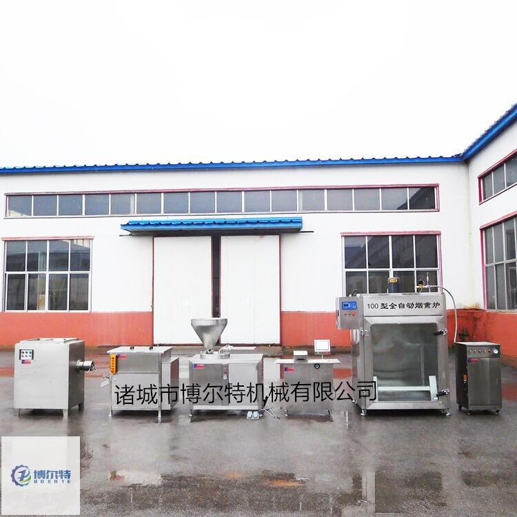 气动定量扭结灌肠机 肉泥肠灌肠机 台湾烤肠加工设备需要配套不同的加工设备来完成成套的加工使用的,每一个步骤有不同的机器来完成的,所有的配套的加工设备都是采用的不锈钢材质生产制作的,所以说机器的耐用度也都是极高的,使用效果方面就是完全的不需要担心的,如果是火腿肠加工的话还需要蒸汽方面的实现的,是不需要烟熏或者是烘干的操作的。