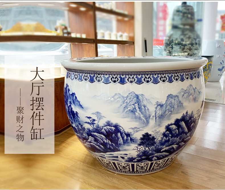 景德镇陶瓷大缸养鱼青花锦鲤睡莲荷花盆户外种树缸招财庭院仿古水缸