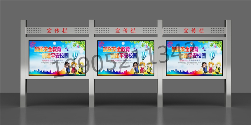 我们是宣传栏制作生产厂家为您提供各类定制款室内外宣传栏,广告灯箱,公交候车亭,太阳能灯箱,LED灯箱,旗杆,花草牌,广告机等。产品特点: 1、制作灯箱材料:不锈钢、镀锌钢板.冷轧板、塑钢等; 2、制作面板材料:钢化玻璃、有机玻璃、耐力板等; 3、宣传栏开启方式:液压支撑杆,节省人力,双面开启; 4、宣传栏制作备选设备:滚动系统、路牌、LED; 5、宣传栏型号外观:结构合理、美观大方、经久耐用; 6、宣传栏规格大小:自由选择、定制; 7、定制滚动功能:可换画2~10幅,画面停留时间可任意设定,自动开关机,自动循环运转 8、箱体数控设备生产,机械精度高,工艺有保证,防水,防尘,抗静电设计; 9、宣传栏外观设计:颜色任选,喷塑、喷漆;挂壁式、落地式、吊装式、组合式;10、定制画面:单面转画、双面转画、单面固定、双面固定;画面材质为高精度数码丝印(防水、防紫外线照射)。 11、宣传栏制作灯箱材质:不锈钢板、镀锌板、冷板烤漆; 12、宣传栏箱体视窗材质:PC耐力板、钢化玻璃。