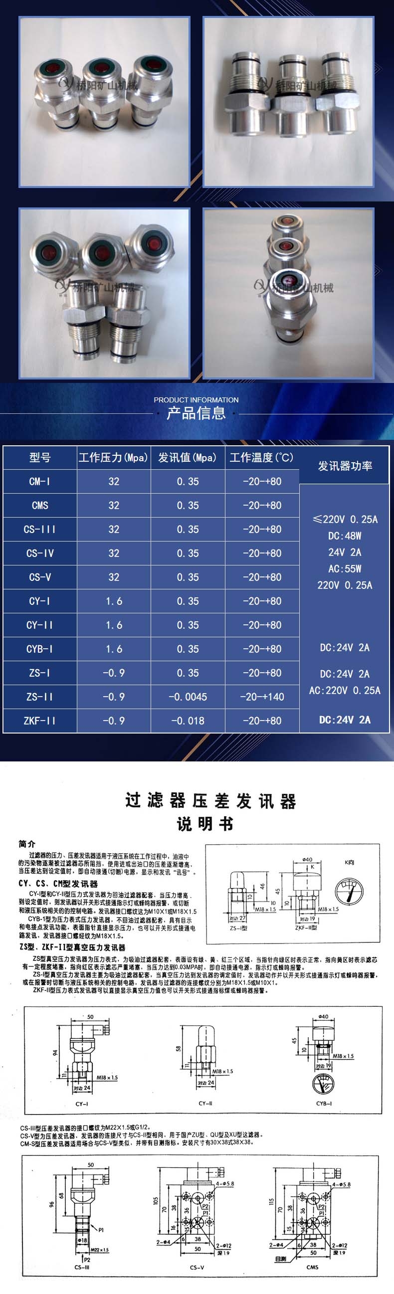 压差发讯器型号主要有CMS,CS-V,CM-I,CS-IV,CZ-II,CS-III,CYB-I,ZKF-II,CY-II,YM-I,ZS-I,CM-I-F等。
