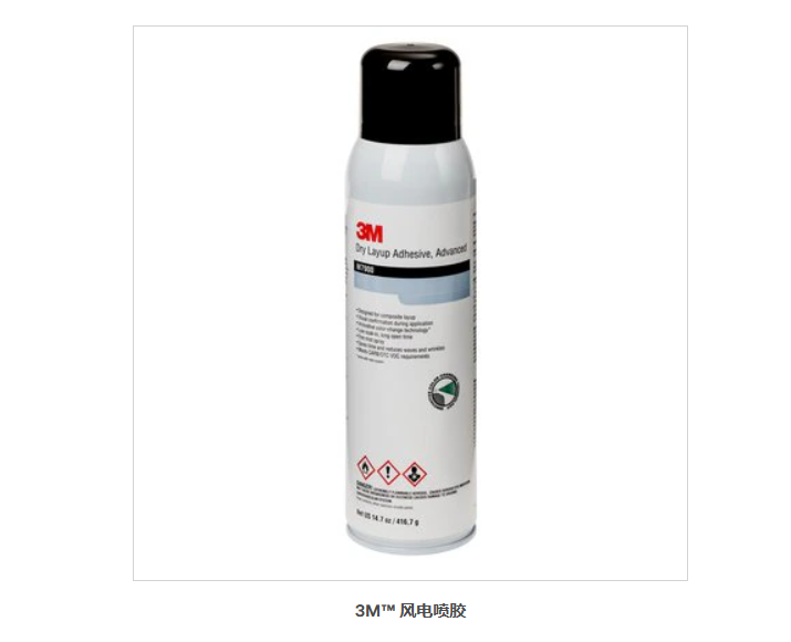 3M? 风电叶片成型专用67喷胶,是一种粘结力较强的喷雾式快干胶,适用于风电机舱罩及其他复合材料真空灌注过程中粘接/固定玻纤布和粗纱及其他增强材料和辅料。