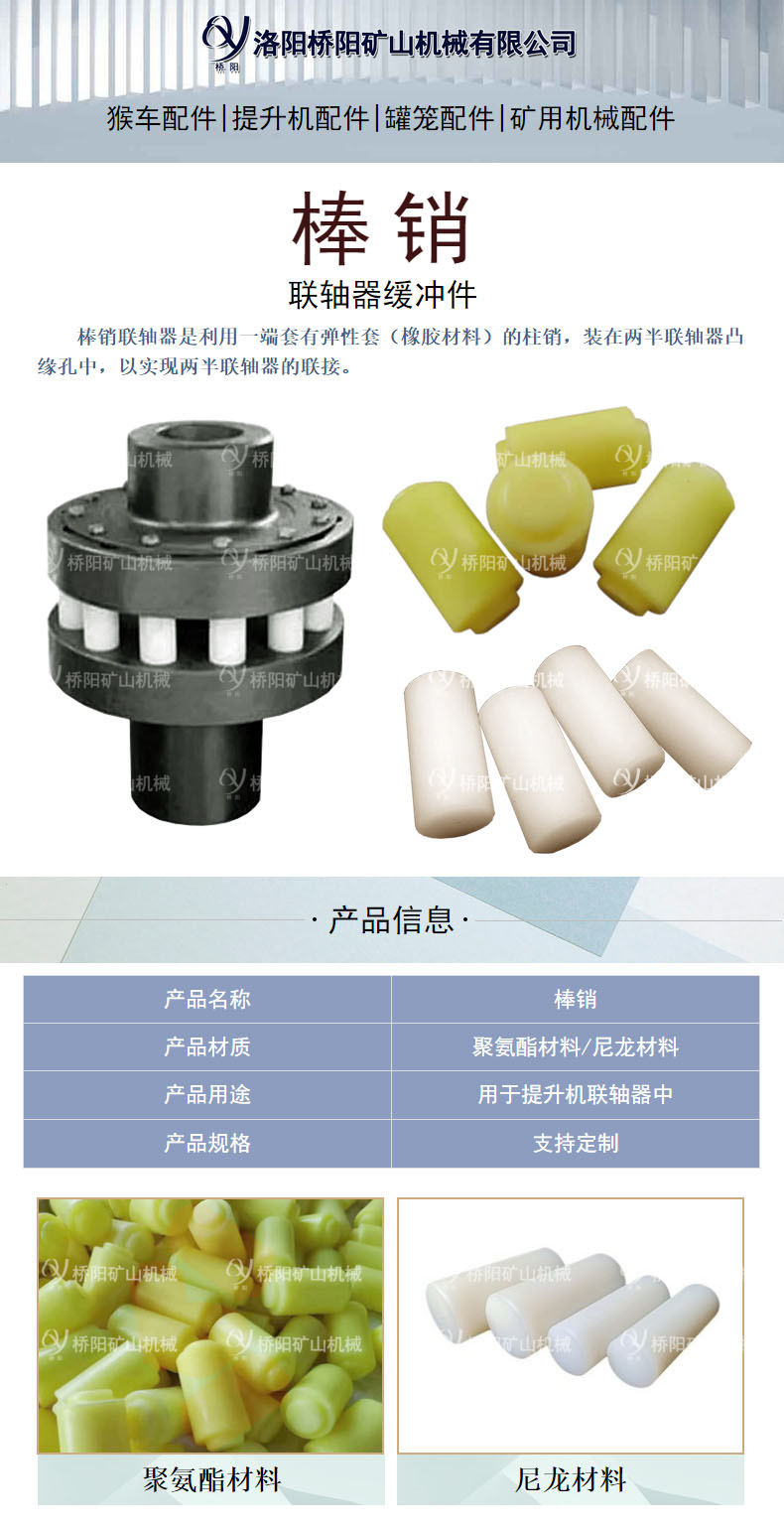 联轴器棒销,联轴器缓冲棒销,传动轴连接件,矿用聚氨酯传动机械接连件——棒销。