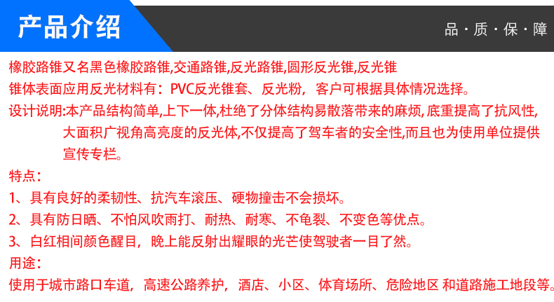 3、白红相间颜色醒目,晚上能反射出耀眼的光芒使驾驶者一目了然。