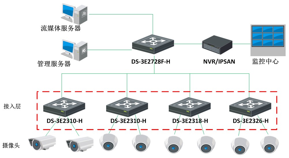 DS-3E2300-H 系列以太网交换机是面向接入层推出的新一代百兆产品,在满足高性能接入的基础上提供更全面的安全接入策略和更强的网络管理维护易用性;可广泛应用于中小型企业、学校以及酒店等行业的网络建设场景。