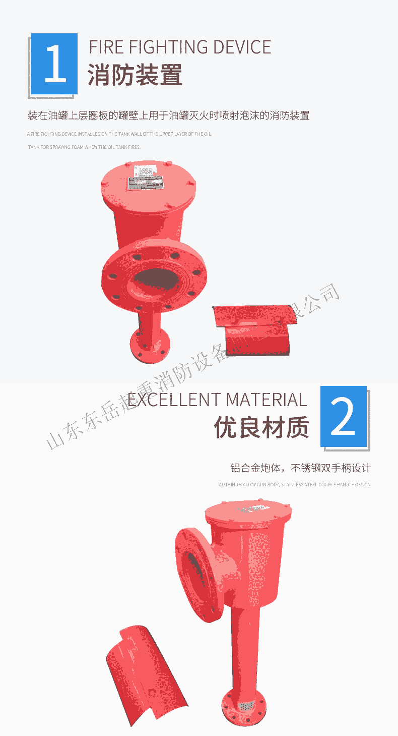 空气泡沫产生器水平或垂直安装固定安装在油罐顶壁上,是产生和喷射泡空气泡沫的灭火设备。当泡沫消防车或固定消防泵供给的泡沫混合液流,经输送管道通过产生器时,吸入大量空气泡沫,将泡沫喷入燃烧液面上形成泡沫层或一层膜,是低倍数液上喷射泡沫灭火系统的关键设备。