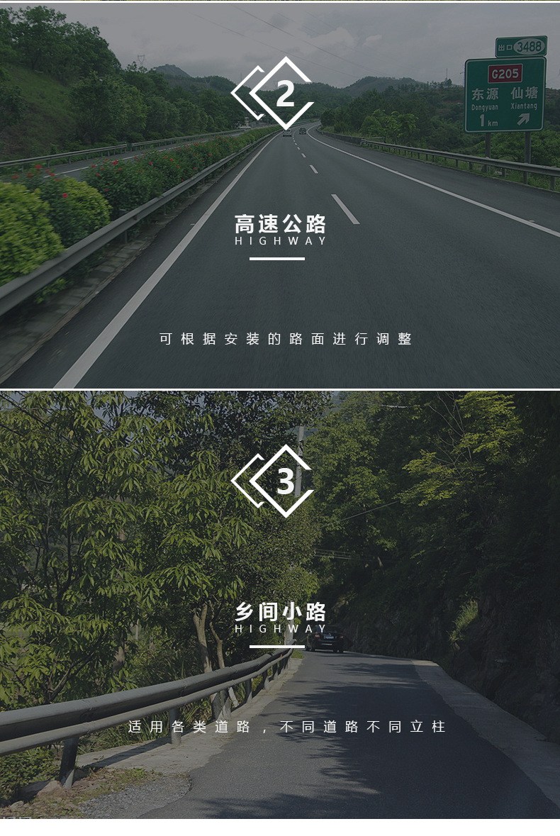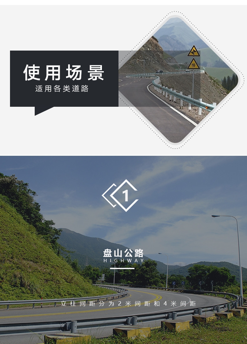 波形护栏一般立柱间距分为2米间距和4米间距;