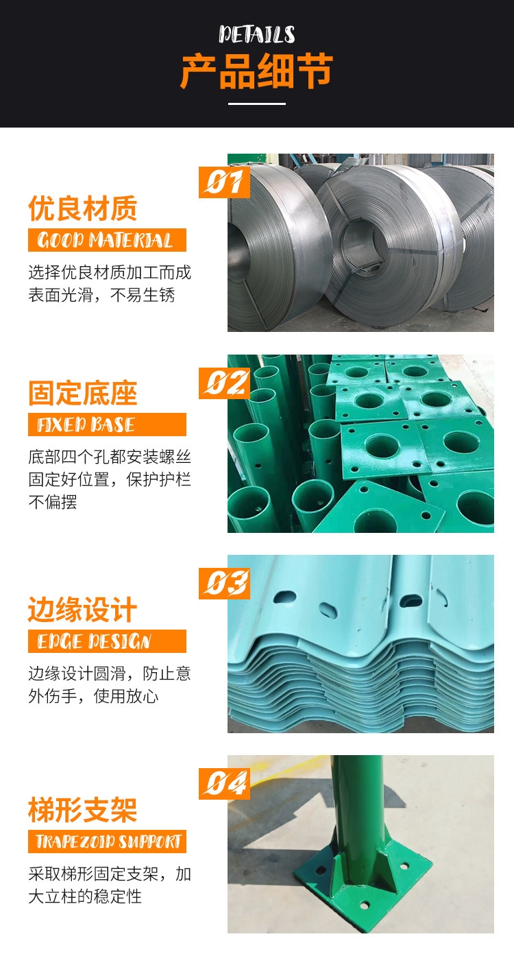 波形护栏产品特点:防腐性能好,抗老化,美观大方。安装简便快捷。