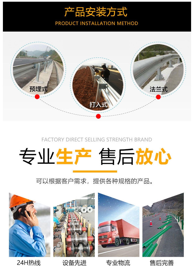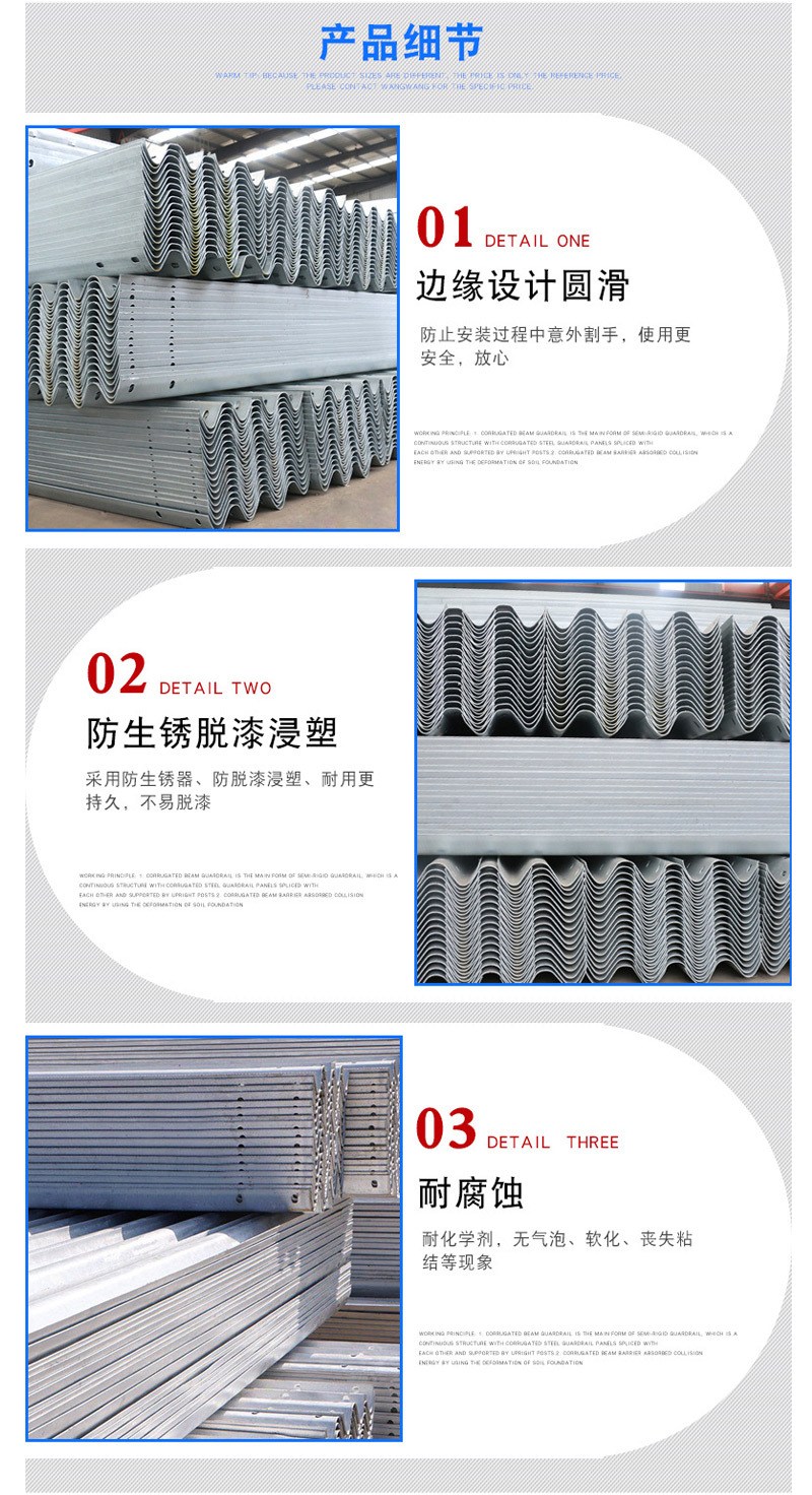 我们的主要业务包括:高速公路护栏板、波形护栏、桥梁护栏的生产、销售与安装。我公司引进先进的冲压、切割、磷化、冷镀锌、热镀锌、大型静电喷塑等全套生产设备。产品通过了工程监理检测中心(国家交通安全设施质量检测中心)的验收,全部符合:交通行业标准JT/T281—2007《高速公路波形梁钢护栏》、国家标准GB/T18226-2000《高速公路交通工程钢构件防腐技术条件》。年生产能力为15万吨.