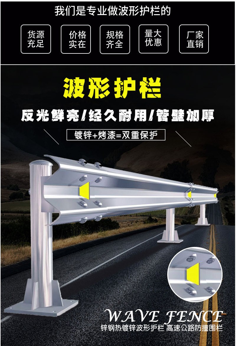 波形护栏板乡村道路国道热镀锌喷塑绿色防撞双波护栏厂家直销