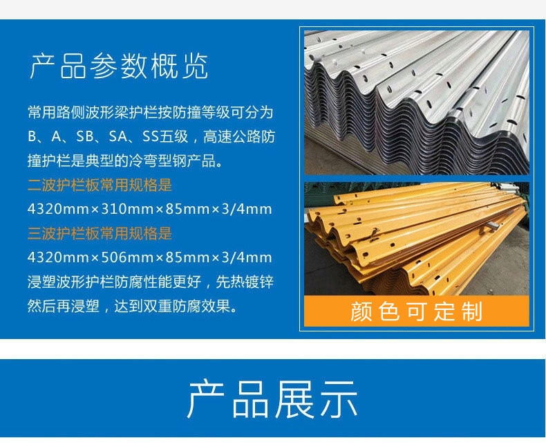 厂家供应高速公路波形护栏 双波三波镀锌喷塑波形护栏