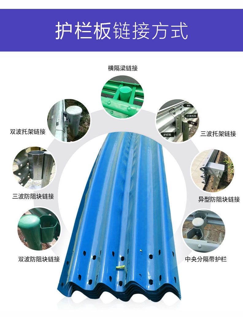 波形护栏又被称为波形板护栏、镀锌板护栏、防撞护栏、W锌钢护栏、道路护栏、乡村公路护栏板、高速公路护栏。其英文名称为corrugated beam barrier是目前国内外公路大桥应用最广泛的安全防护栏。波形护栏属于冷轧,半钢性护栏;一般按设置地点和防撞等级来分类。