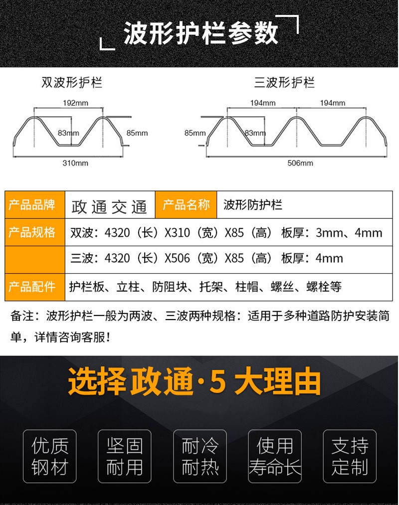 波形护栏又被称为波形板护栏、镀锌板护栏、防撞护栏、W锌钢护栏、道路护栏、乡村公路护栏板、高速公路护栏。其英文名称为corrugated beam barrier是目前国内外公路大桥应用最广泛的安全防护栏。
