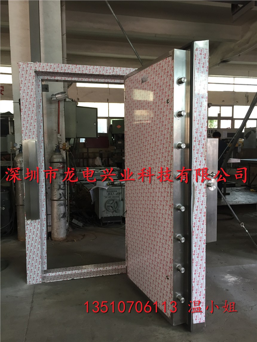 不锈钢防爆金库门设有安全重锁装置:当金库门受到气割破坏时,双重锁装置就会运行,自动将门闩进行锁住,即使库门锁具机构被破坏,库门也不被开启。门框与门扇链接采用加厚型铰链,能够让两者更紧密的链接起来,使门扇受到的冲击力均匀分散开来。