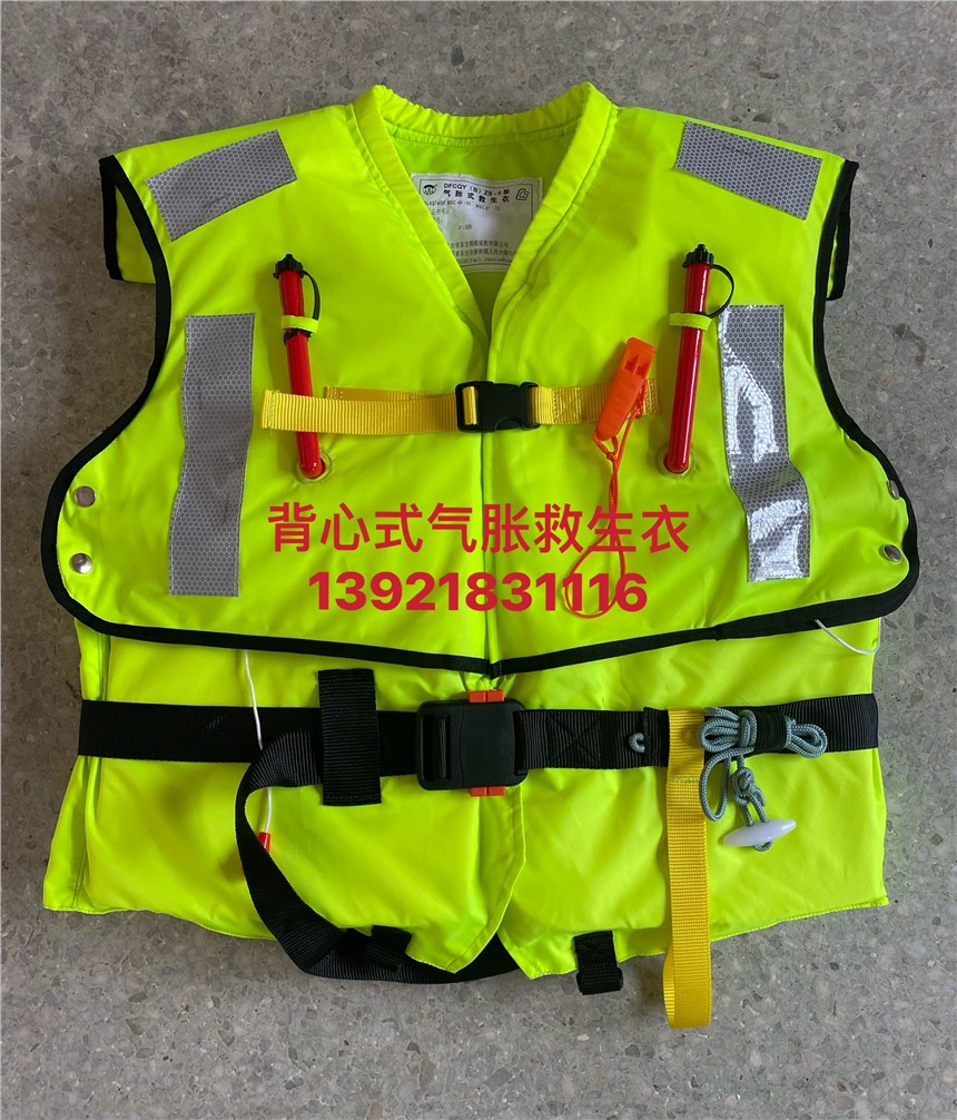 DFCQY(B)ZS-II背心式气胀救生衣,CCS双气囊充气救生衣由一个尼龙布复合TPU材料制作的气室、自动充气装置、CO2贮气瓶、嘴吹气管和外衣套等组成,在遇险落水的紧急情况下,自动充气装置可在5秒钟内对气室充气,以保证落水人员的安全。产品体积小、重量轻、穿着舒适、使用方便.适用于各类水上航行船舶作业人员救生用,也可以作为个人防护用品休闲救生用。产品通过中国船级社CCS认证。