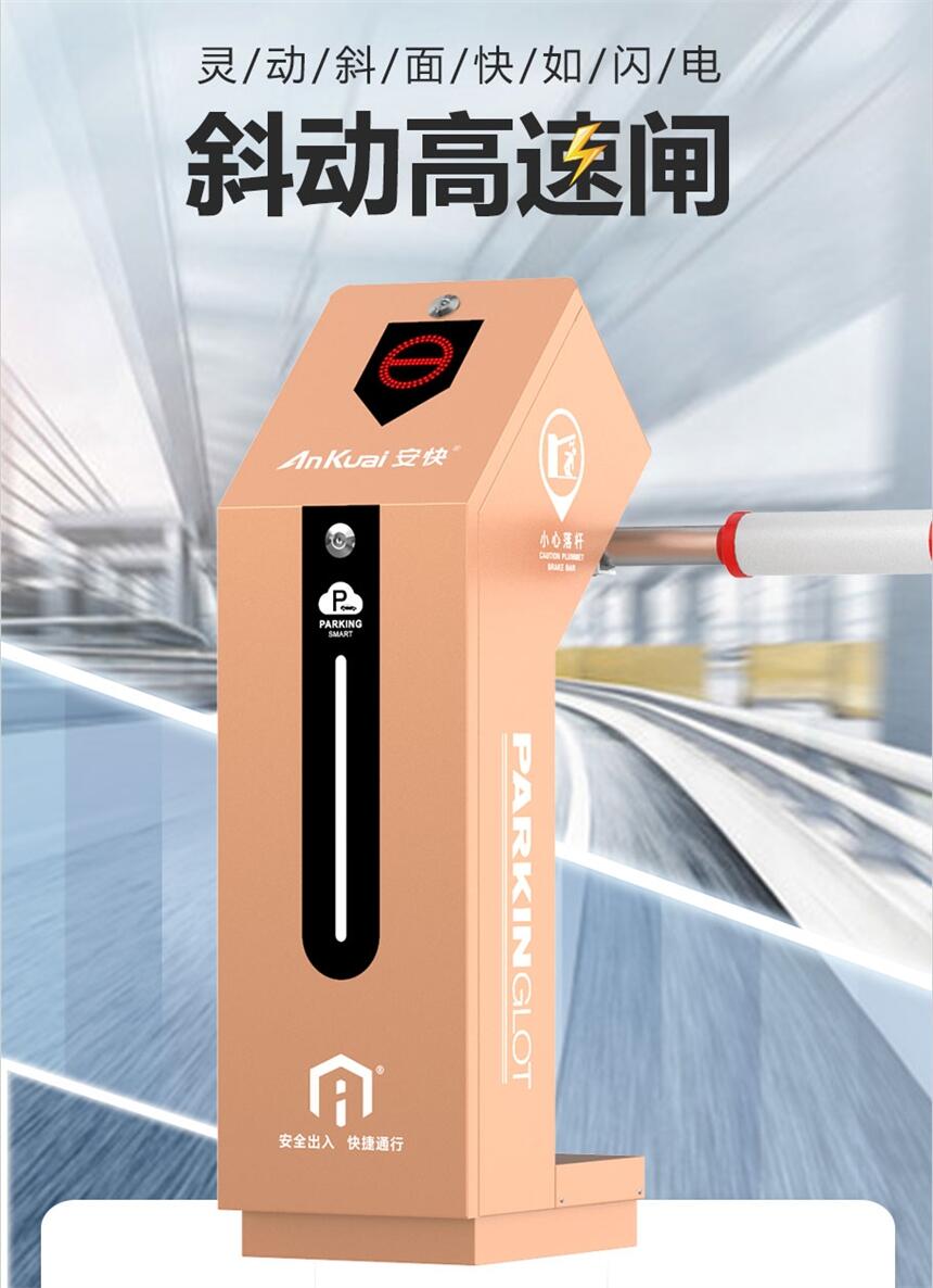 4.0.8秒开闸、无惧车流:闸杆45度方向运动,速度0.8秒-3秒可调,闸杆可达3米,满足车流量较大且有高度限制场所。