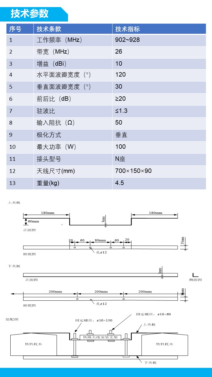 JAVS18-1031铁路天线是与铁路车号自动识别系统配套使用。铁路天线是安装在轨道上,用来发射微波信号,铁路天线同时接收铁路车号电子标签的反射回来的信息。
