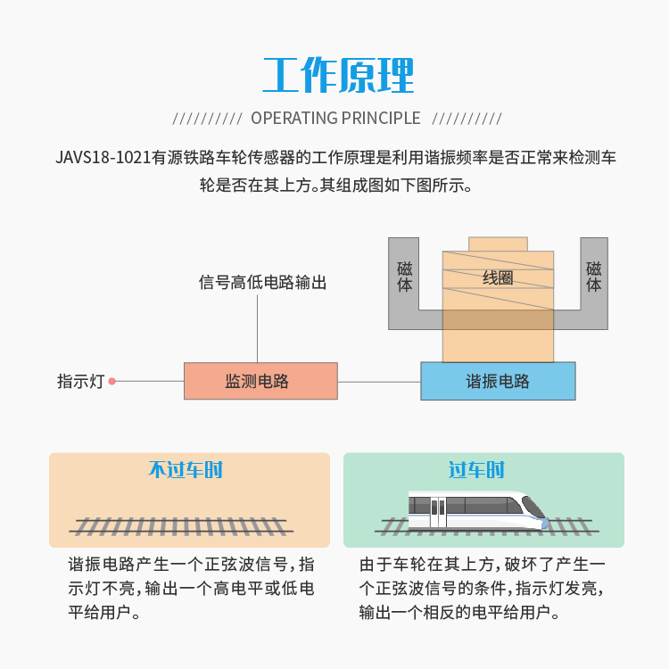 JAVS18-1021智能型有源铁路车轮传感器是在原有的JRFS1有源铁路车轮传感器的基础上,