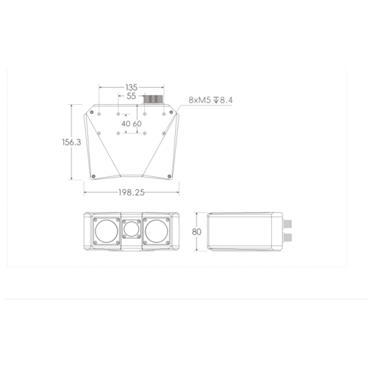 DPS500B 华睿科技检测定位机器人引导配套视觉软件平台双目结构光相机3D立体相机 结构尺寸图(mm):