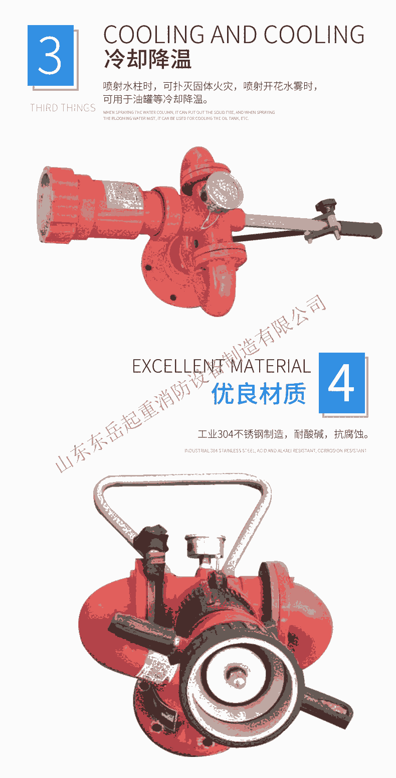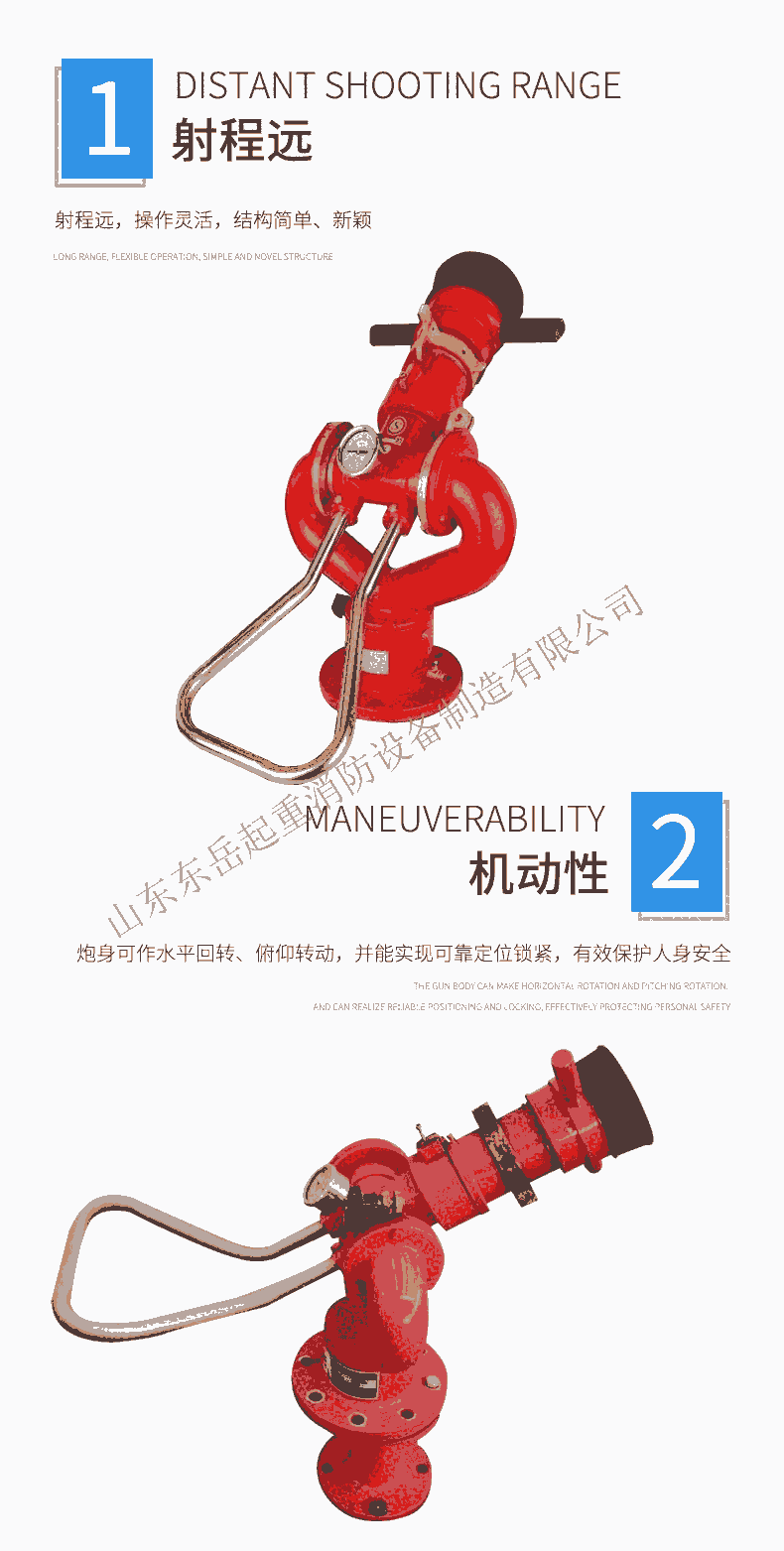可调式PS30-50消防水炮是由底座、壳体、喷头、炮筒、水平回转等机构组成,炮身可作水平回转、俯仰转动,并能实现可靠定位锁紧,以利消防人员撤离火场,保护消防人员的人身安全。该炮具有直流/开花两种喷射功能,当喷射水柱时,可扑灭远距离固体火灾;当喷射开花水雾时,可用于火场降温冷却、消防抢险。因该炮功能齐全、性能稳定、结构新颖、操作方便,广泛适用于配备重型消防车、消防舰艇,也可作为工矿企业、仓库、油田、贮罐的固定灭火设备。