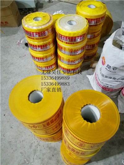 警示带有两种:一种为普通警示带;另一种为夹金属可探测警示带又称示踪带,(带不锈钢金属警示带) 由于随着社会经济不断发展,地下管网建设中越来越多地采用PEPPRPVC等塑料管,探测仪器根本无法探测到管线走向,夹金属警示带可以解决管线无法探测这一难题,且该产品采用高强度、耐老化的高分子材料,以PEPPOPP为主要原料,经防腐处理加工而成,耐腐蚀性能好,色泽鲜艳、醒目,长期铺设在地下50年不腐蚀,不褪色,符合长期埋地质量不变要求。