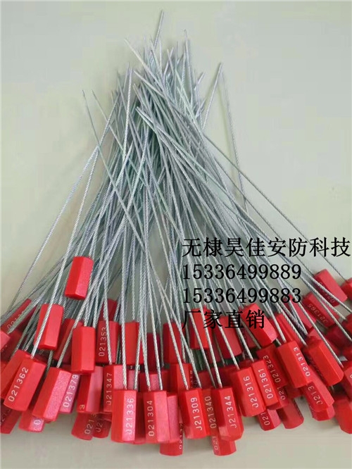 一次性施封锁锁体由锌压铸而成,表面可打印标识,编号。·锁长L25cm(可加长),钢丝直径1.8mm.。·施封范围可随意调节、抽紧。·抗拉强,总长:225mm,长度可按客户要求定做,
