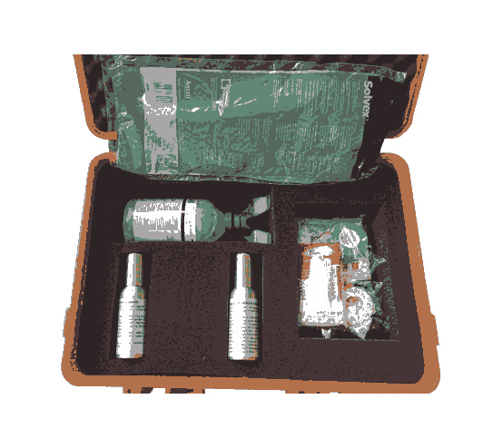 1.紧急冲肤液×3;2.防化手套×2;3.便携急救包×1;4.剪刀×1;5.止血带×1;6.镊子×1;7.创口贴×5;8.擦片×4;9.棉签×10;10.胶带×1;11.检查手套×1;12.敷料×2;13.绷带×1;14.防蚊虫叮咬片×2.