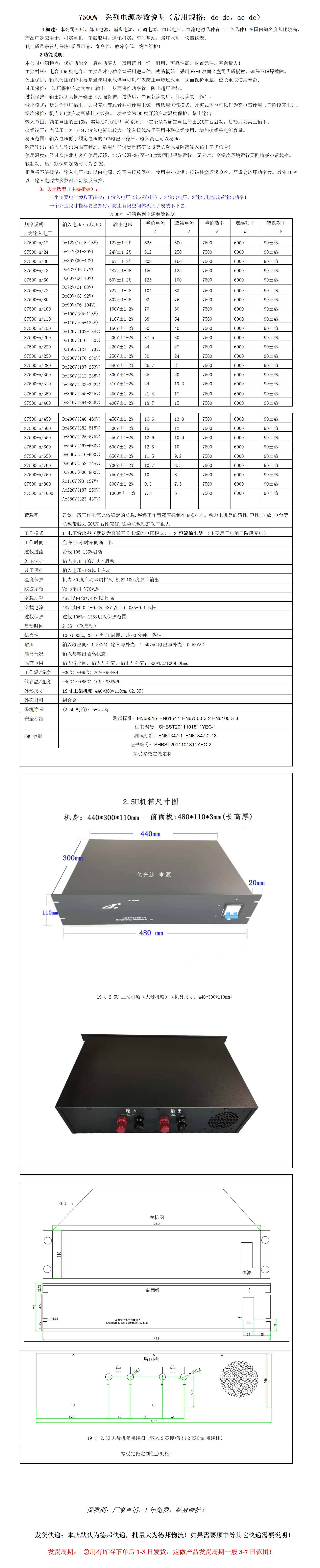 • 规格:S7500-36V转300V