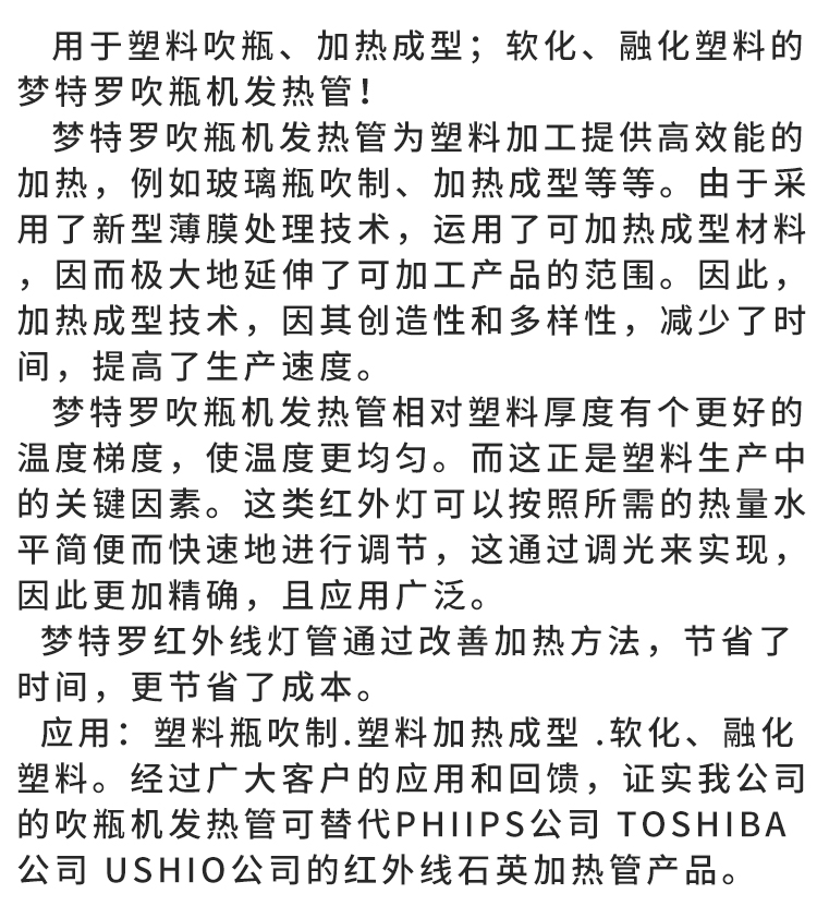 2023年实体生产厂家供应12-480V500-3000W吹瓶机加热灯管