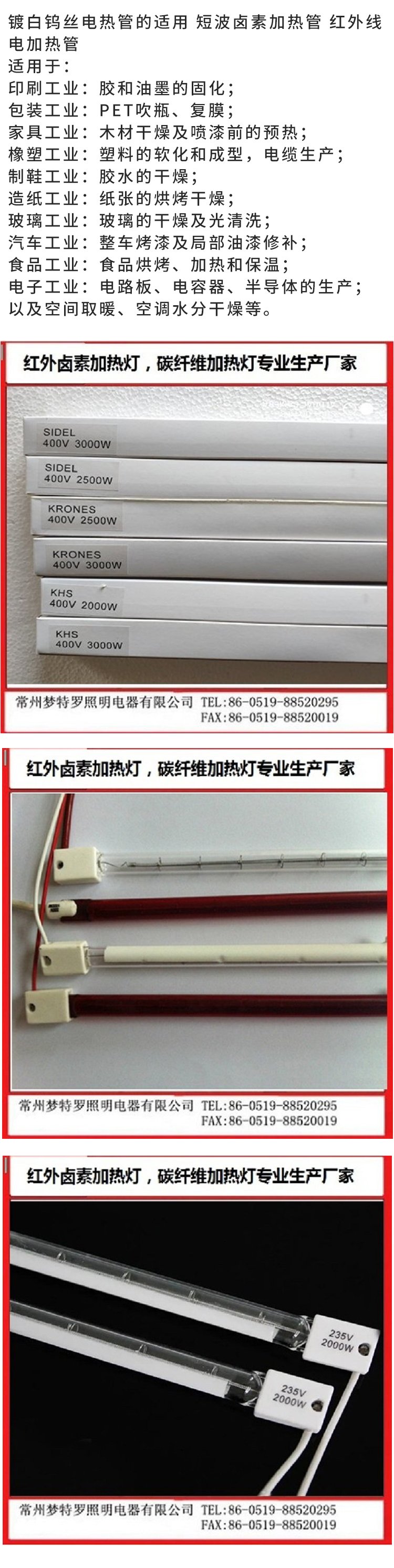 供应梦特罗镀白钨丝电热管12-480V500-3500W加热管