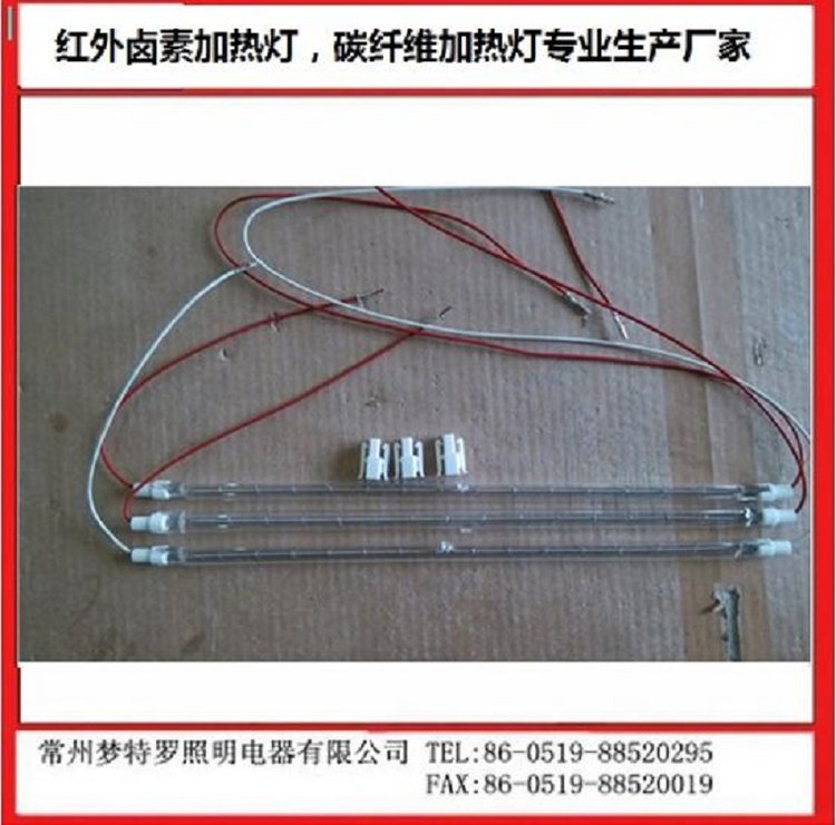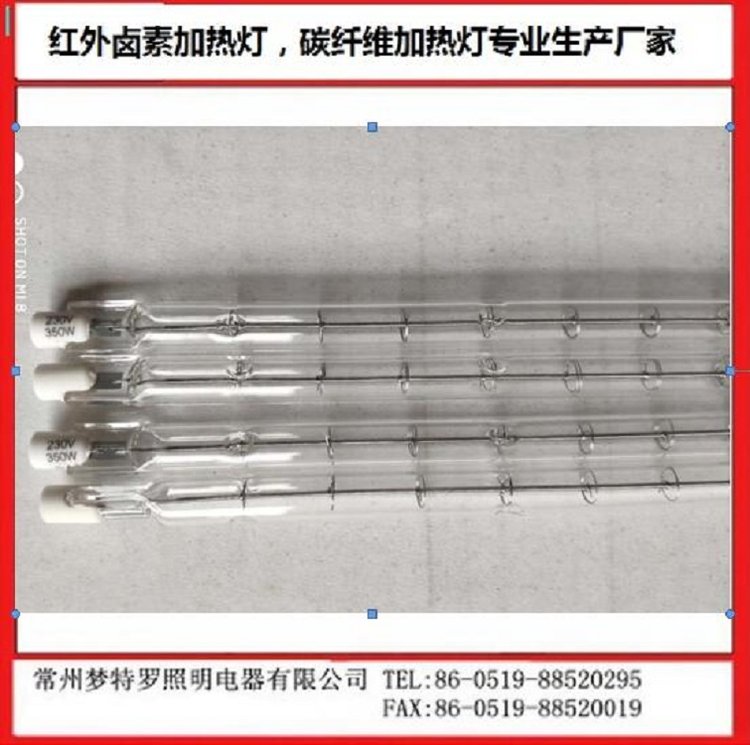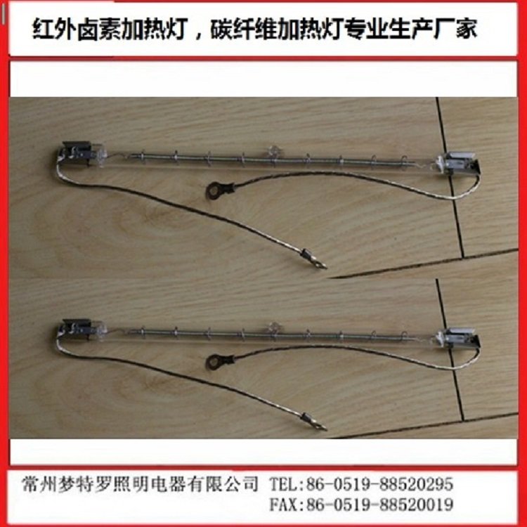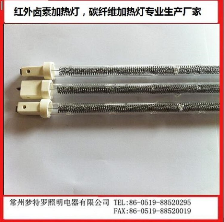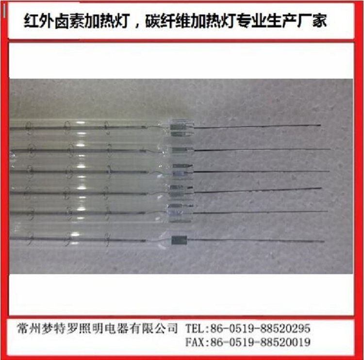 梦特罗卤素发热管采用耐温3400℃的钨丝与耐高温的石英玻璃管以卤素混合气体做保护气,加工成各种形状(环形、梨形、U形、C形、直管形)远红外卤素发热灯管。广泛运用到各种小家电,如:电暖器、雅乐炉、电火炉、咖啡壶、美容器、烘箱等;石英管表面可朦砂工艺来减少亮度。