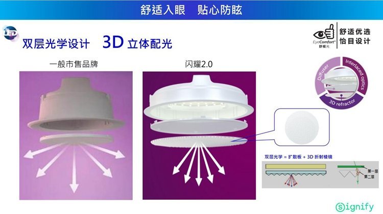 3、能效提升 符合新法规:闪耀四代2.0 LED天花筒灯选用高品质高效能LED,率先符合新能效标识规范