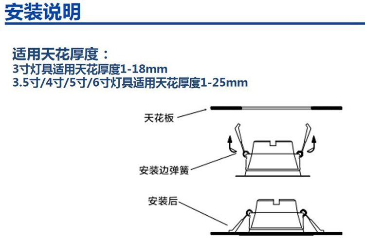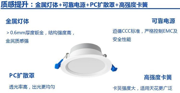 4、高强度卡簧:卡簧强度大,适用天花更广泛