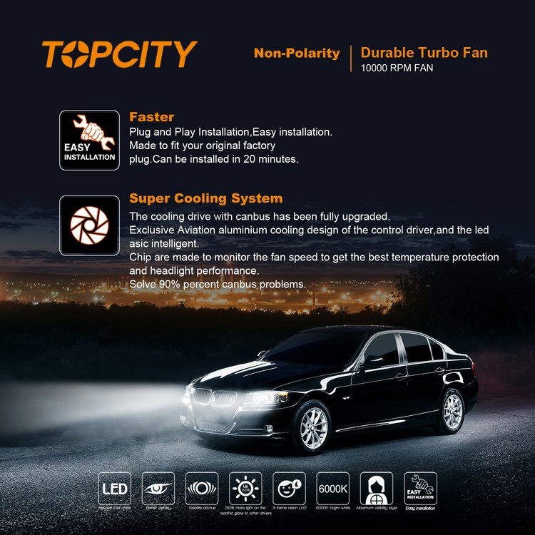 供应车灯LED汽车灯泡 9004/9007远近光切线前大灯直插式风扇头灯 品牌 | TOPCITY/光亮一号 | ||