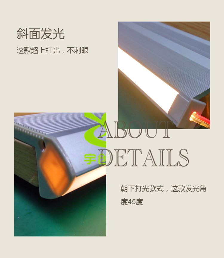 台阶灯外型美观,接通电源之后将台阶营造出极佳的视觉效果。台阶灯的经久耐用,具有耐高温、无污染、抗老化的特点,节能高效,使用寿命非常长。台阶灯的材料具有一定防腐蚀性,在露天环境中使用也不会受影响。