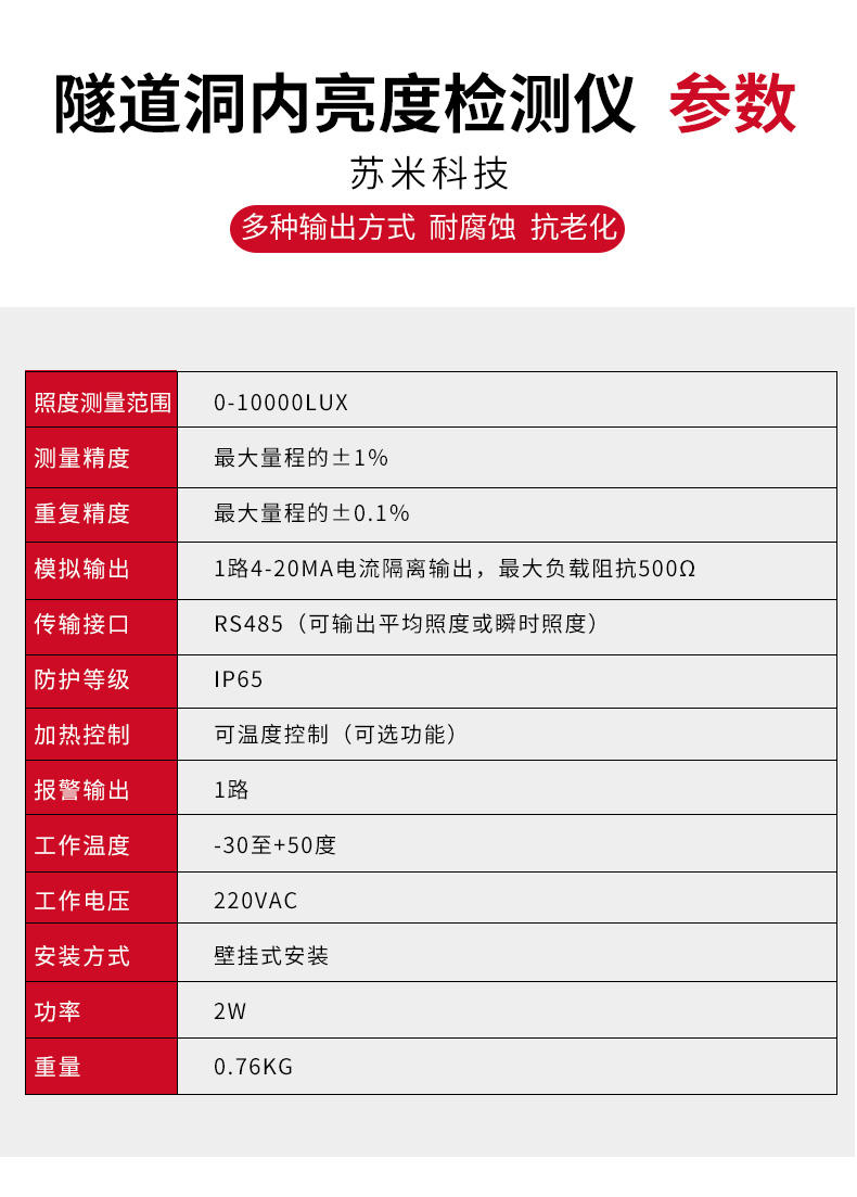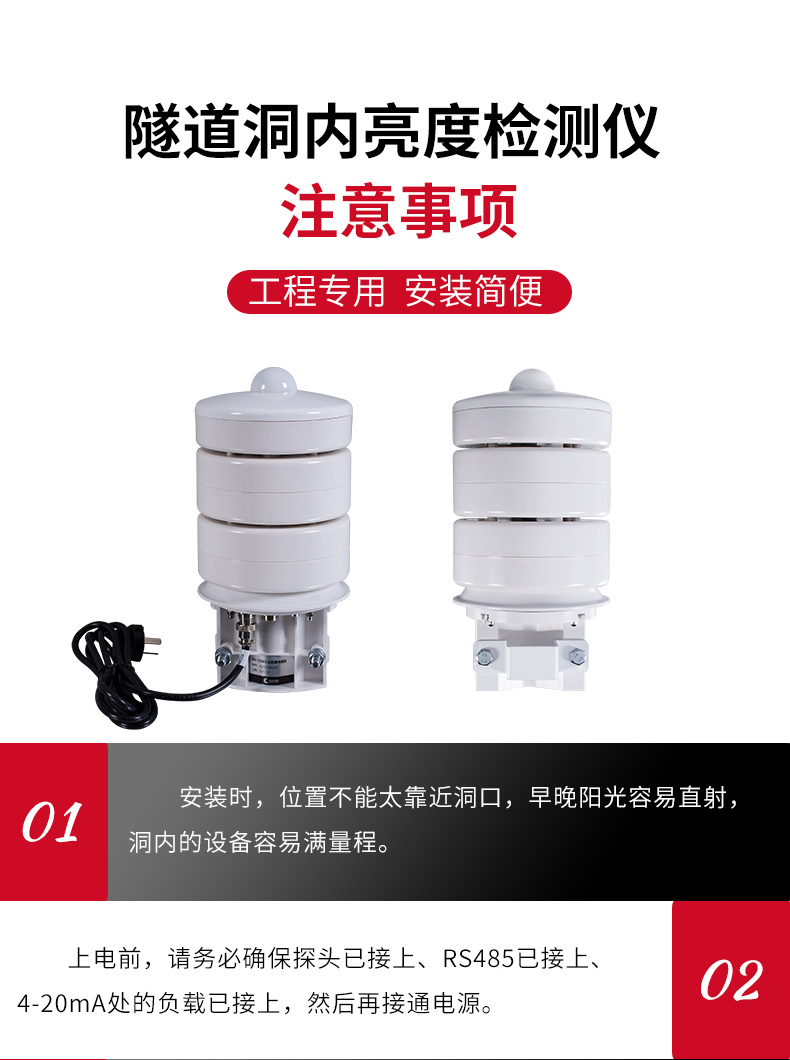 安装方式 | 安装在4m左右的高度,距隧道入口大于10m的适当位置 | ||