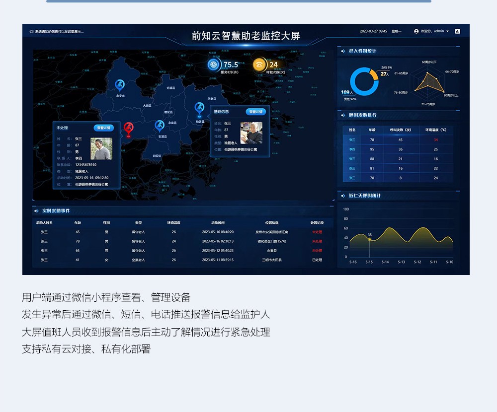 高龄独居老人一键呼叫器SOS求助报警器居家养老呼叫系统大屏监控