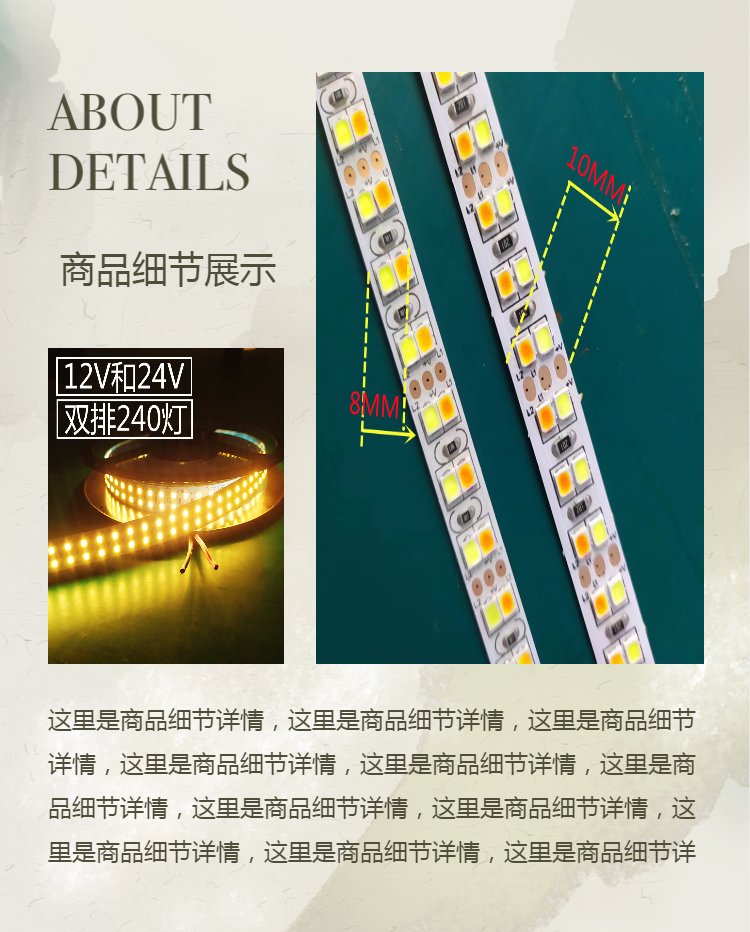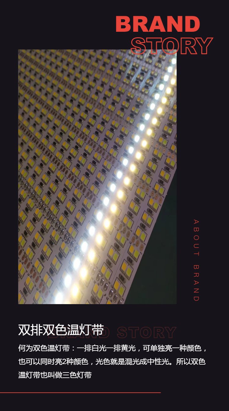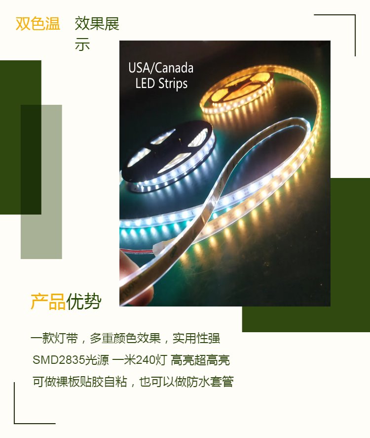 led双色温灯条2835白光暖光中性光240灯一米双排高亮18W灯带