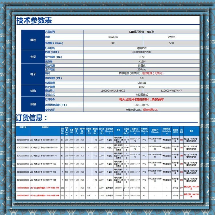 型号 | LED-无频闪灯带-众-60珠/6.5W |