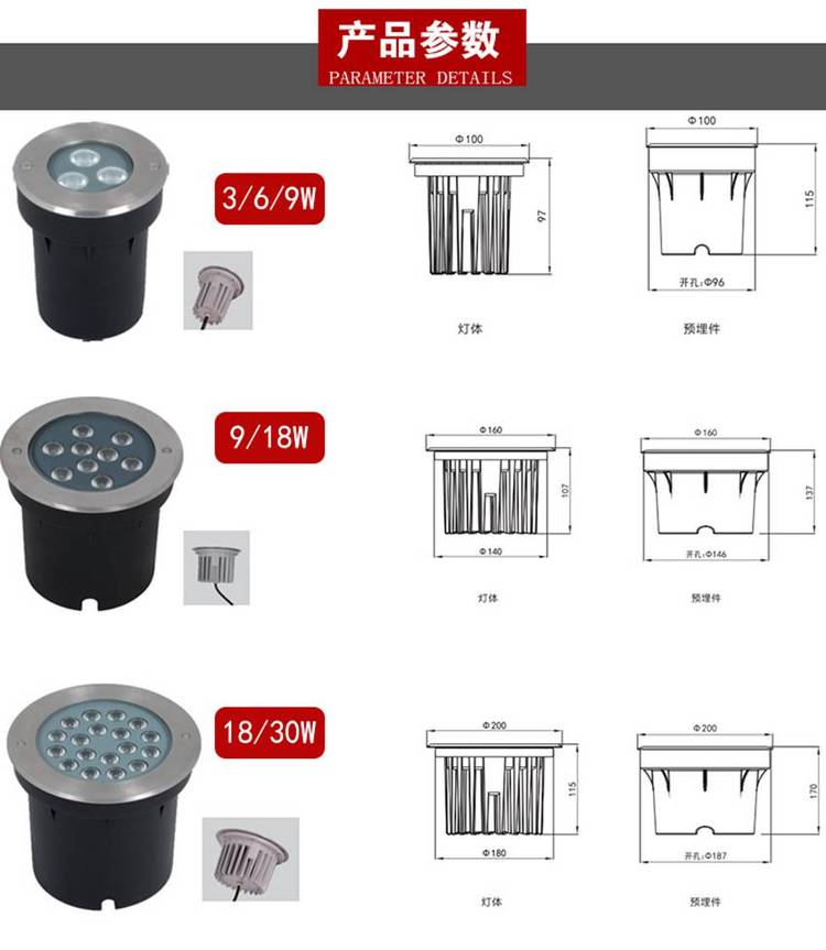 2.地埋灯功率:3W/9W/18W/24W/36W