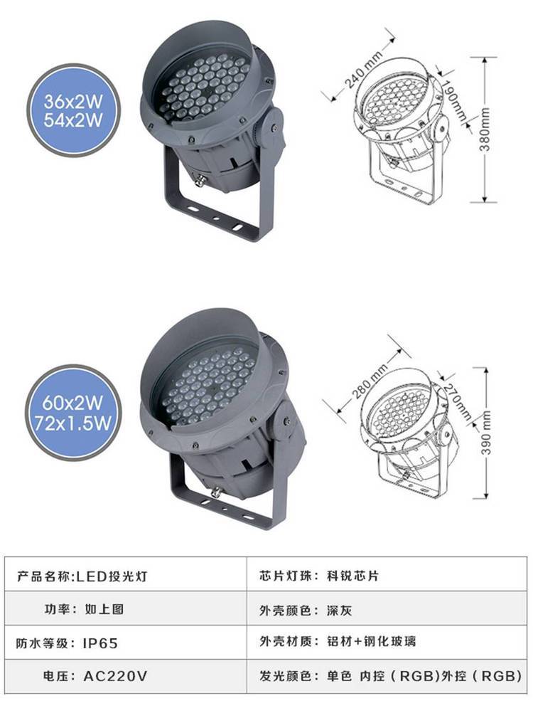 上海别墅家装亮化led防眩投光灯科锐芯片36w72w投光灯具定制