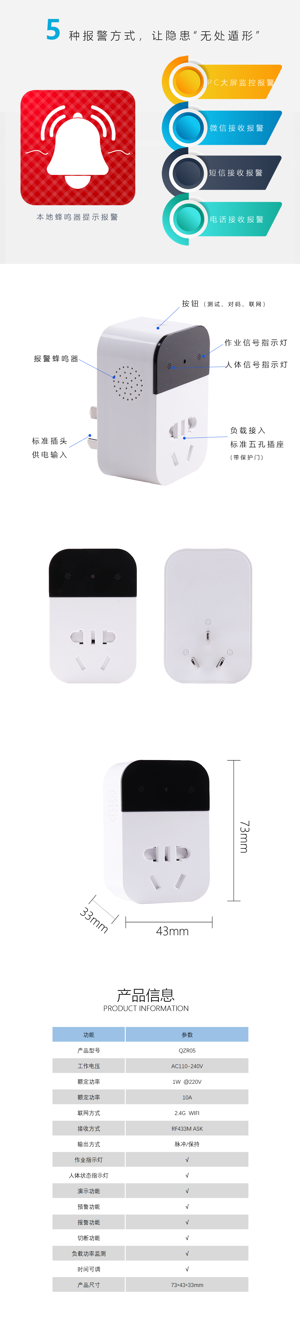 厨房动火离人报警系统人体传感器QZR05距离检测
