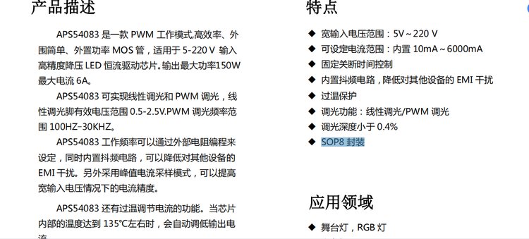 应用领域 | ◆ 舞台灯,RGB 灯 ◆ 汽车灯照明 ◆ 台灯 | ||