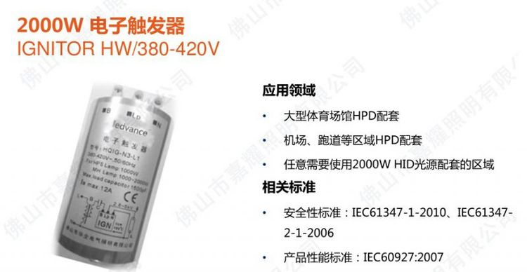 朗德万斯IG-HW VS20 2000W双端金卤灯电子触发器