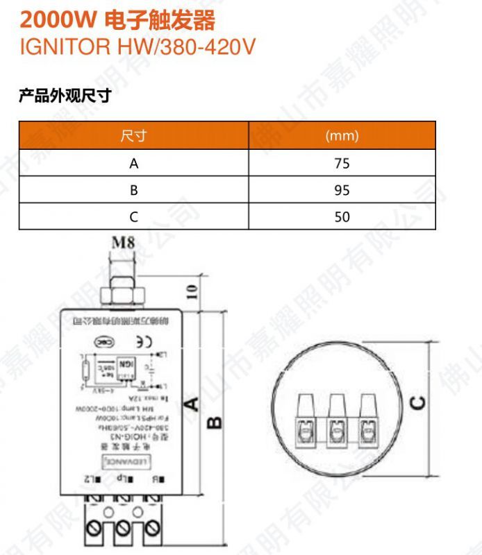 电子触发器,专为2000W漏磁式镇流器配套设计,全铝外壳