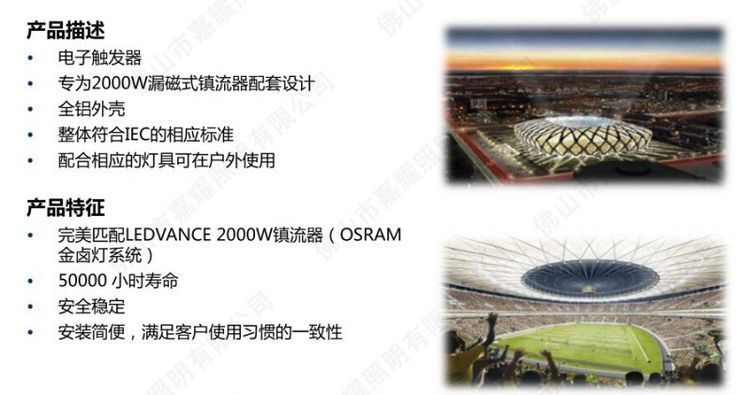 完美匹配LEDVANCE 2000W镇流器(OSRAM金卤灯系统)50000 小时寿命