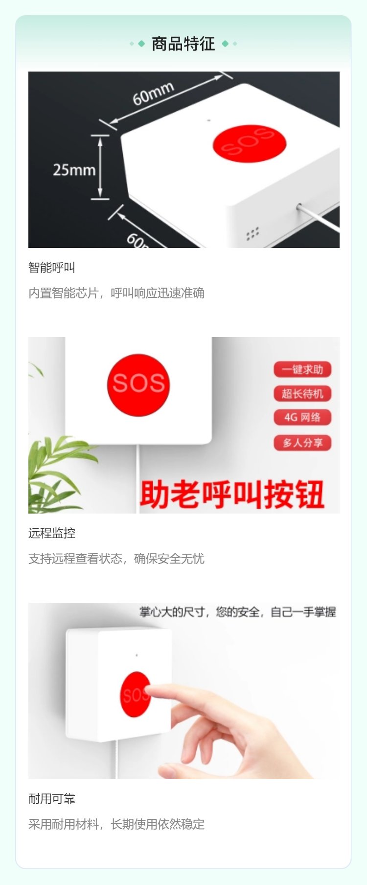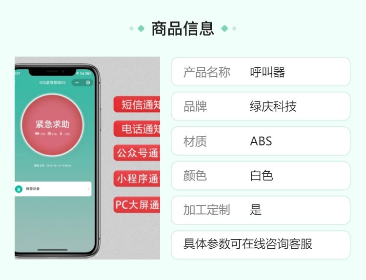 SOS一键报警求助绿庆科技ABS白色无线呼叫器高效服务呼叫系统