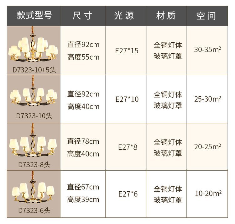 吊灯类型 | 全铜/铜吊灯 | ||