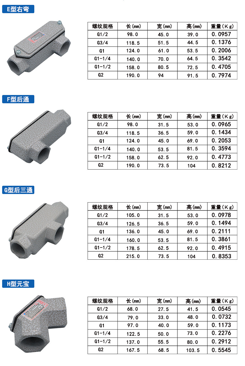 1.5寸铝合金防爆穿线盒BHC三通元宝通弯通DN40直通四通左弯过线盒